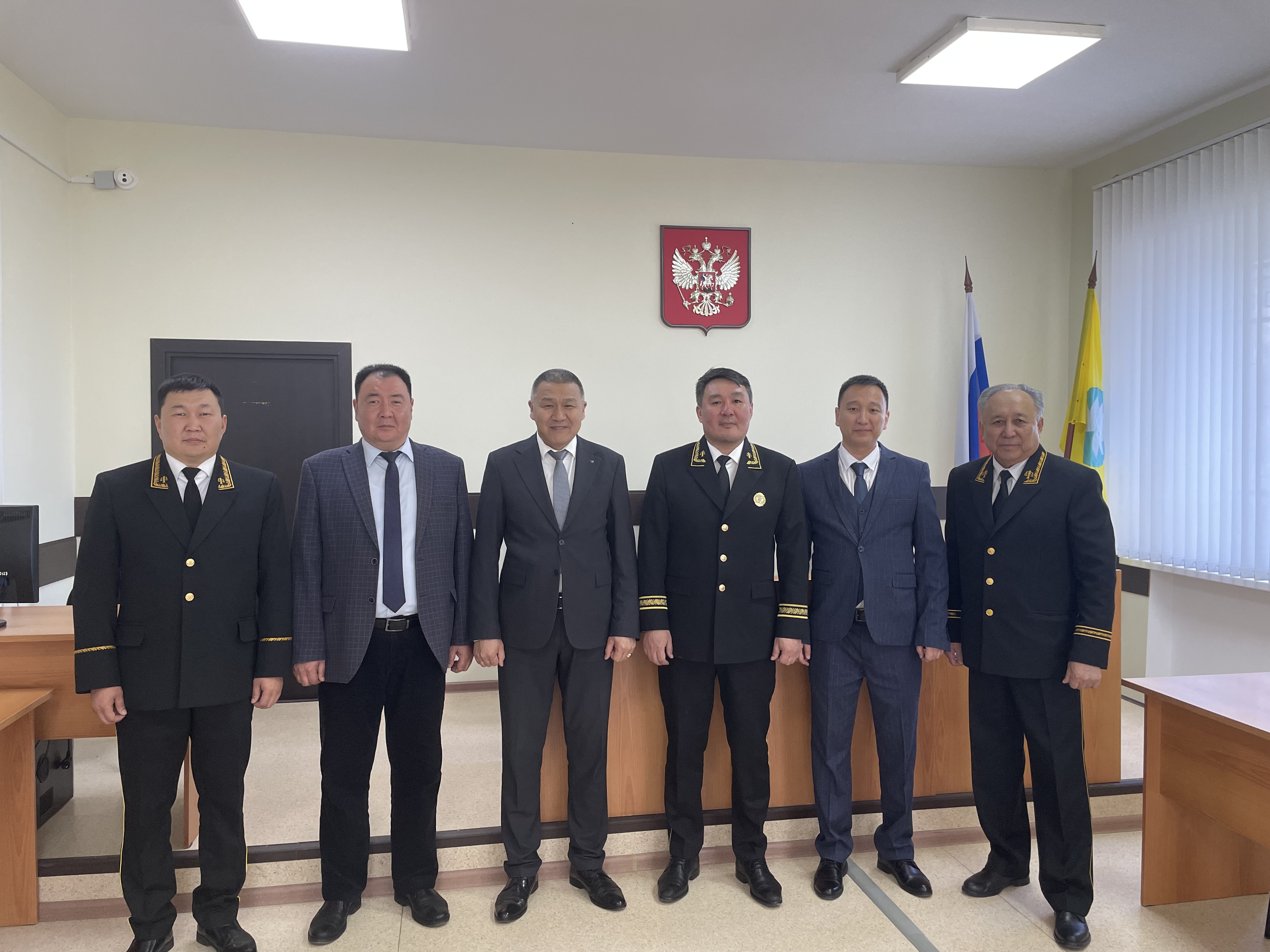 Председатель суда Анатолий Михайлович Карсаев поздравил Мергена Владимировича с назначением на должность мирового судьи.